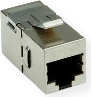 Geschirmte Keystone Kupplung in CAT.6A zur Verbindung bzw. Verlängerung von RJ-45 Netzwerkkabeln • Geschirmte RJ-45 Kupplung zum Verlängern von Twisted Pair Kabeln • Passend für Keystone-Panel und Anschlussdosen • Geeignet für Kat.6A Verkabelungen bis 500 MHz • Gesamtes Gehäuse aus Metall zum Schutz der Signale gegen elektromagnetische Einstreuung • 8 Kontakte, 1:1 verbunden • Schmaler Formfaktor für Umgebungen mit wenig Platz.
