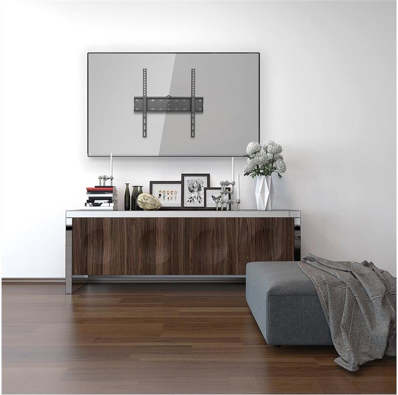 Stabile und feste TV Wandhalterung mit gerade mal 27mm Wandabstand - die Tragkraft beträgt bis zu 40kg und die Halterung unterstützt maximal VESA 400x400. Für Bildschirme von 32" bis 55" (max. VESA 400x400) Tragkraft von bis zu 40kg Feste Aufhängung Sehr geringer Wandabstand von 27mm Sicherung gegen unbeabsichtigtes Lösen der Montagehaken Integrierte Wasserwaage.
