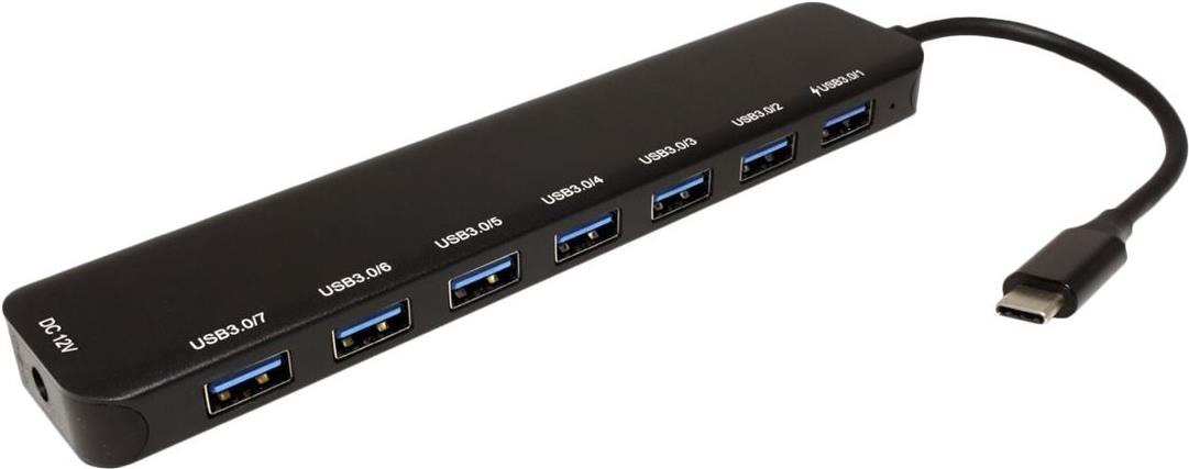 Dieser Hub kann bis zu sieben USB 3.0 / USB 3.2 Gen 1 Peripheriegeräte an einen USB-Typ-C Port eines PCs anschließen.