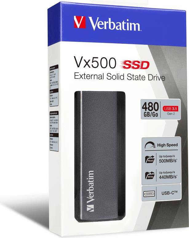 | Produktbeschreibung | Verbatim Vx500 - Solid-State-Disk - 480 GB - USB 3.1 Gen 2 |