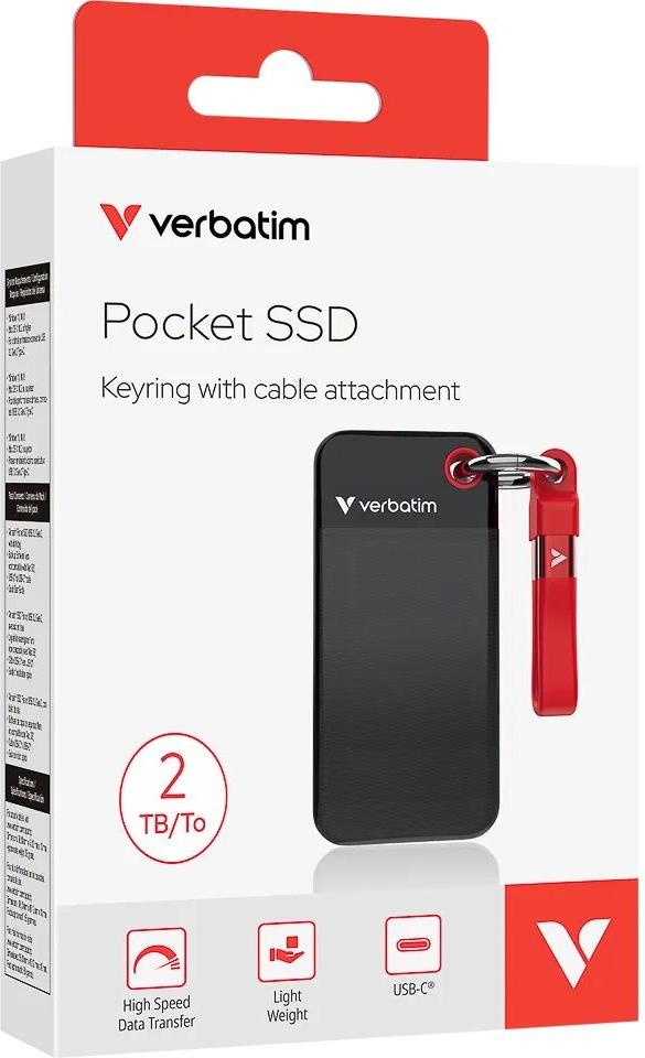 • Verbatim Pocket SSD USB 3.2 2TB Black/Red 32196 (32196)