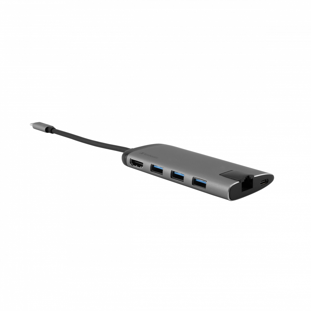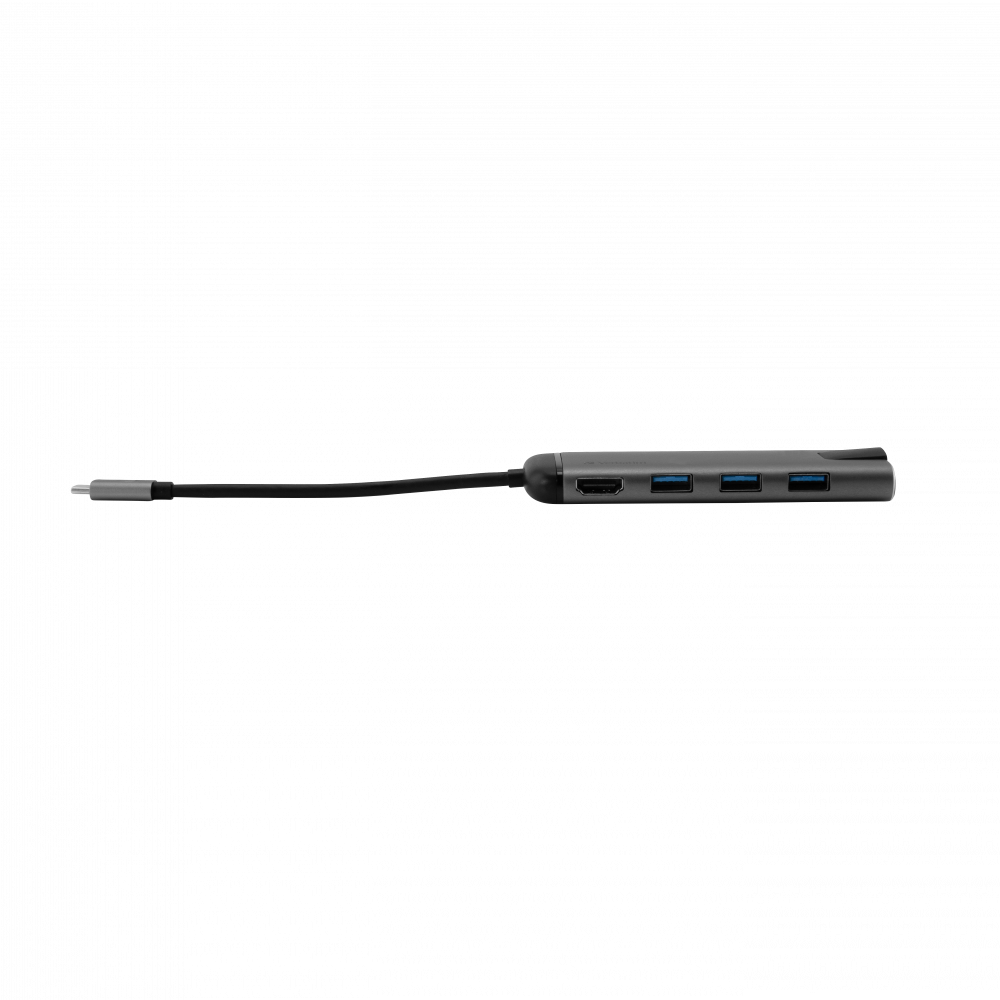 Der USB-C Multiport-Hub ist der ideale Begleiter für die modernen flachen Laptops und MacBooks. Weiteres Zubehör erfordert zusätzliche Anschlüsse, die den neuen Laptops fehlen. Dieser Multiport-Hub bietet einen USB-C-Schnellladeanschluss zum Laden Ihres Geräts in Benutzung sowie eine HDMI-Schnittstelle zur Verbindung mit einem HDMI-Display - dazu noch drei USB-3.0-Anschlüsse für sämtliches Zubehör und einen Gigabit Ethernet-Anschluss für die kabelgestützte Netzwerkverbindung. Brauchen Sie auch ein Kartenlesegerät? Dieser Hub verfügt auch über einen Kartenlese-Slot für SD/microSD-Karten! Schließen Sie den Hub an der USB-C-Buchse Ihres Laptops an, um Ihre Arbeitsmöglichkeiten sofort zu erweitern.