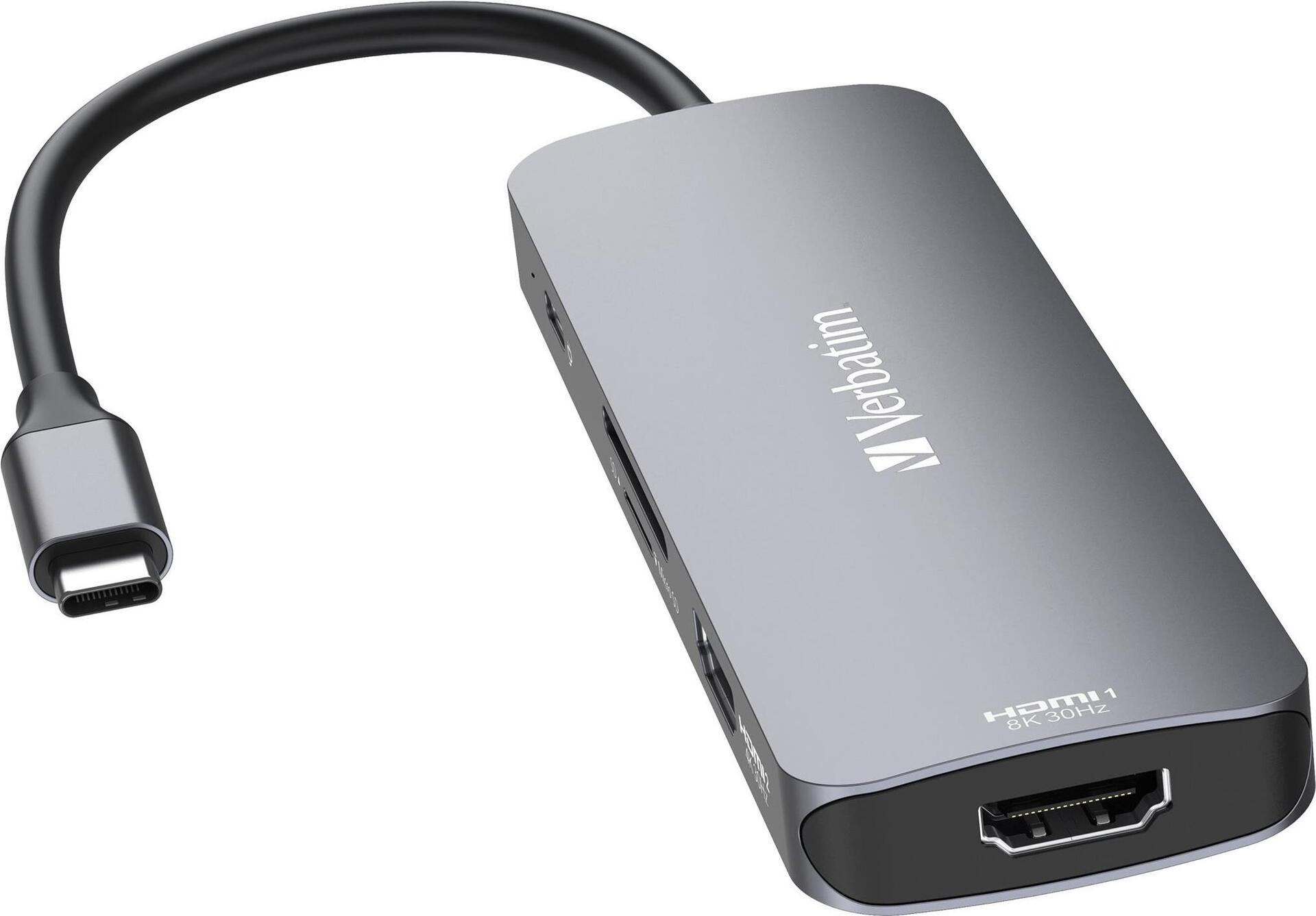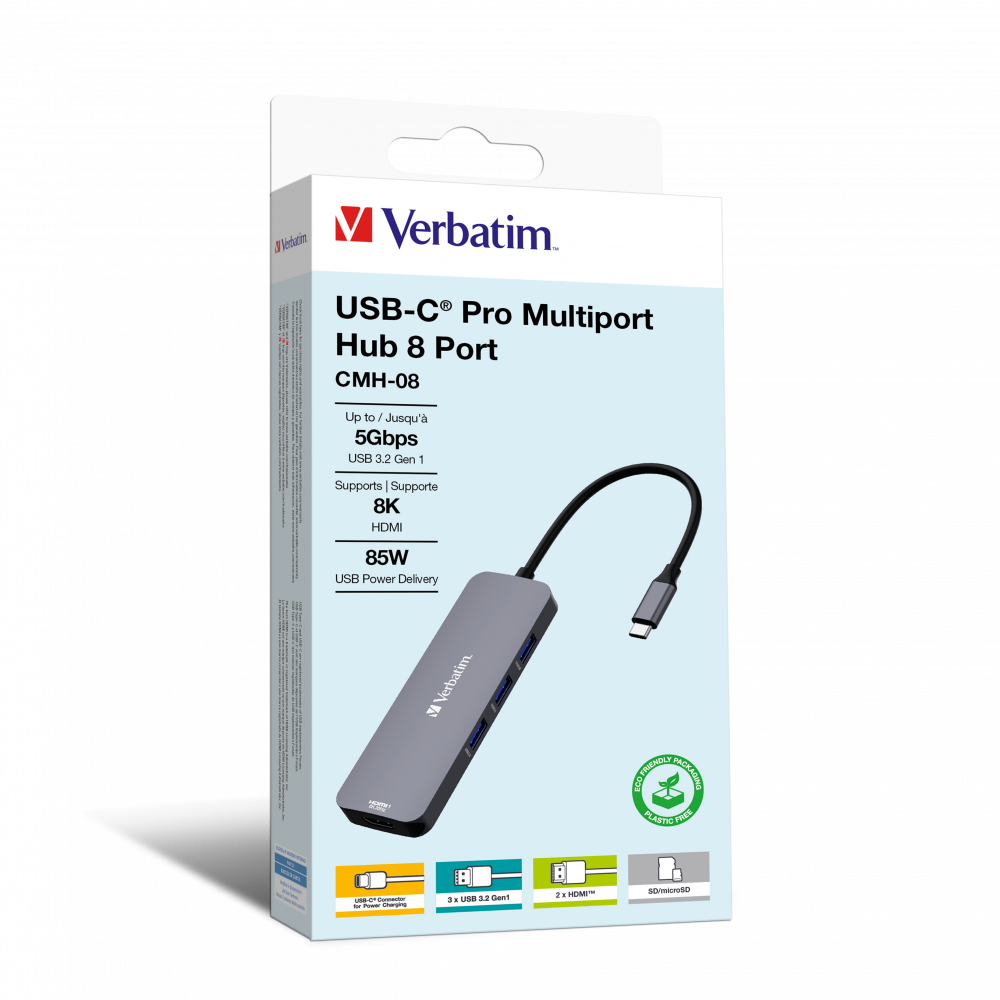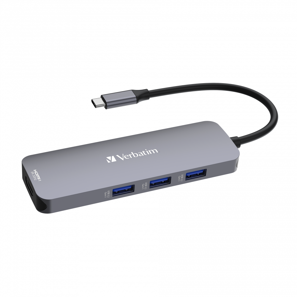 Der Verbatim CMH 08 ist ein kompakter und dennoch leistungsstarker Hub, der alle Ihre Anschlussanforderungen erfüllt. Mit seiner Unterstützung für 8K30Hz-HDMI-Ausgang können Sie Videos in hoher Qualität genießen, wodurch er für Profis und Enthusiasten geeignet ist. Der Hub ist außerdem mit USB Power Delivery ausgestattet, das bis zu 100 W unterstützt und dafür sorgt, dass Ihre Geräte auch bei längerem Gebrauch geladen und betriebsbereit bleiben. Die Vielzahl an Anschlüssen, darunter ein Typ-C und drei USB-A 3.2 Gen 1, bietet vielseitige Anschlussmöglichkeiten für eine breite Palette an Peripheriegeräten. Egal, ob Sie im Büro oder unterwegs sind, das kompakte Design und das 15 cm lange Kabel machen das CMH 08 zum idealen Begleiter für jede Aufgabe. Er wurde für den Einsatz auf dem Schreibtisch entwickelt und kann bis zu 8 Geräte zusammenfassen, um Ihren Arbeitsbereich zu optimieren und die Produktivität zu steigern.