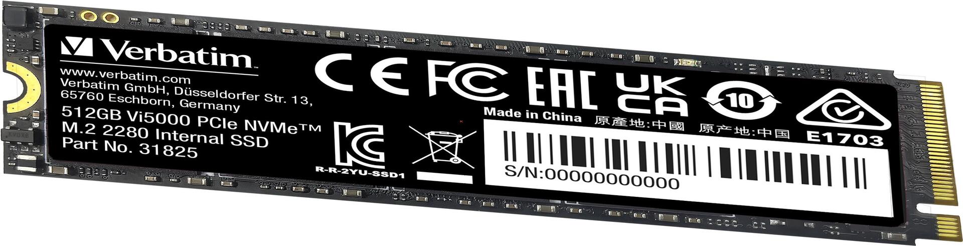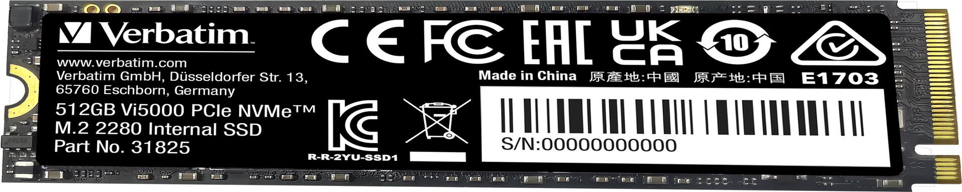 Verbatim Vi5000 M.2 SSD 512GB PCIe4 NVMe 31825 - SSD - 512 GB (31825)