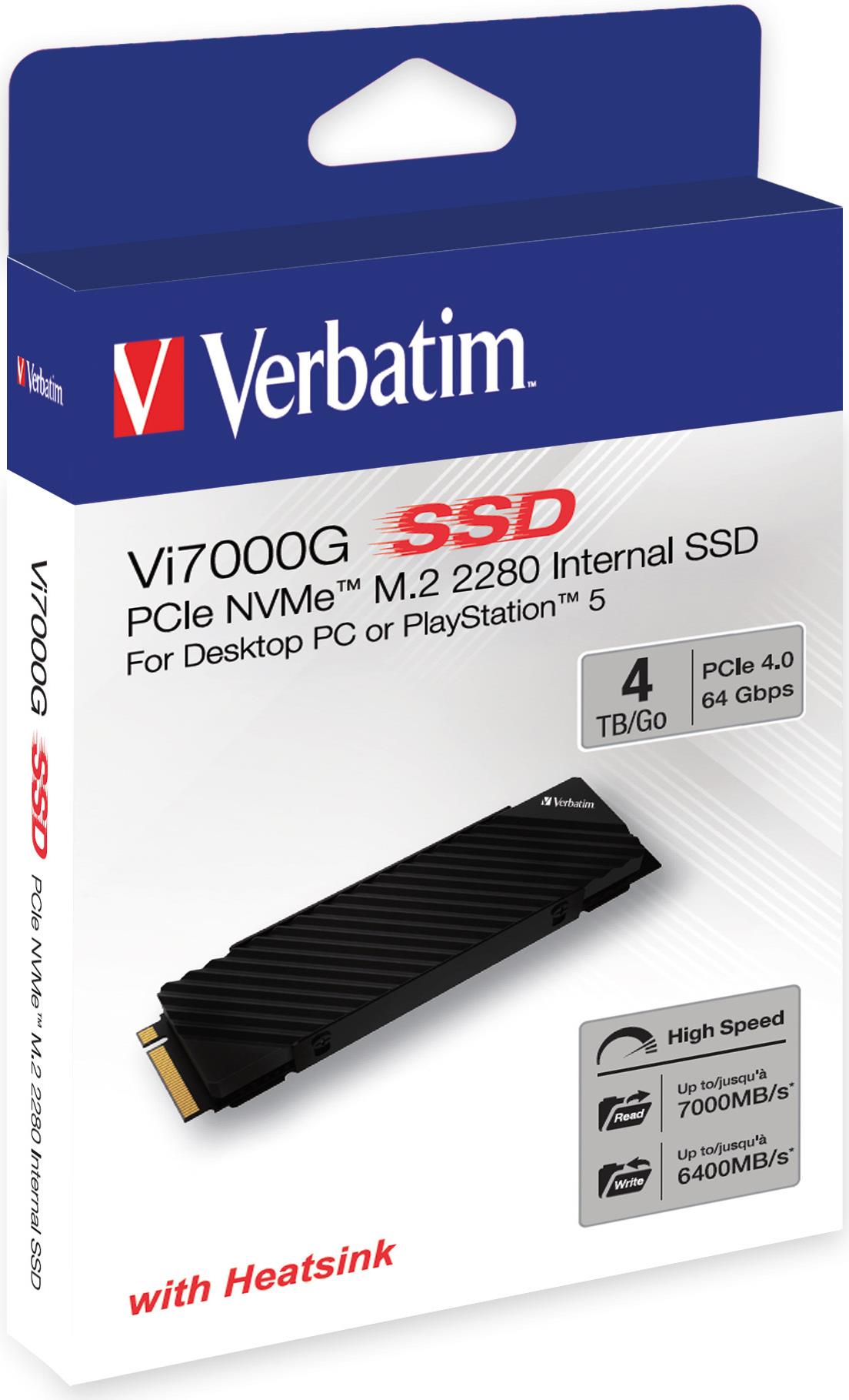Setzen Sie mit der Verbatim Vi7000G M.2 PCIe NVMe SSD unvergleichliche Geschwindigkeit und extreme Leistung frei. Die Vi7000G wurde für Gamer und Hochleistungsnutzer entwickelt und ist das ultimative Upgrade für Ihr Gaming-Rig oder Ihre Konsole. Da die Vi7000 mit PlayStation 5 kompatibel ist, können Sie PS5-Spiele direkt auf dem Laufwerk speichern und spielen.
