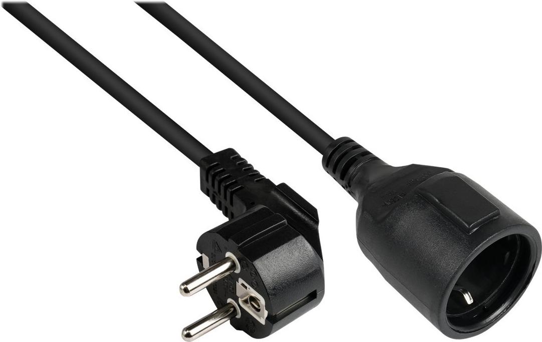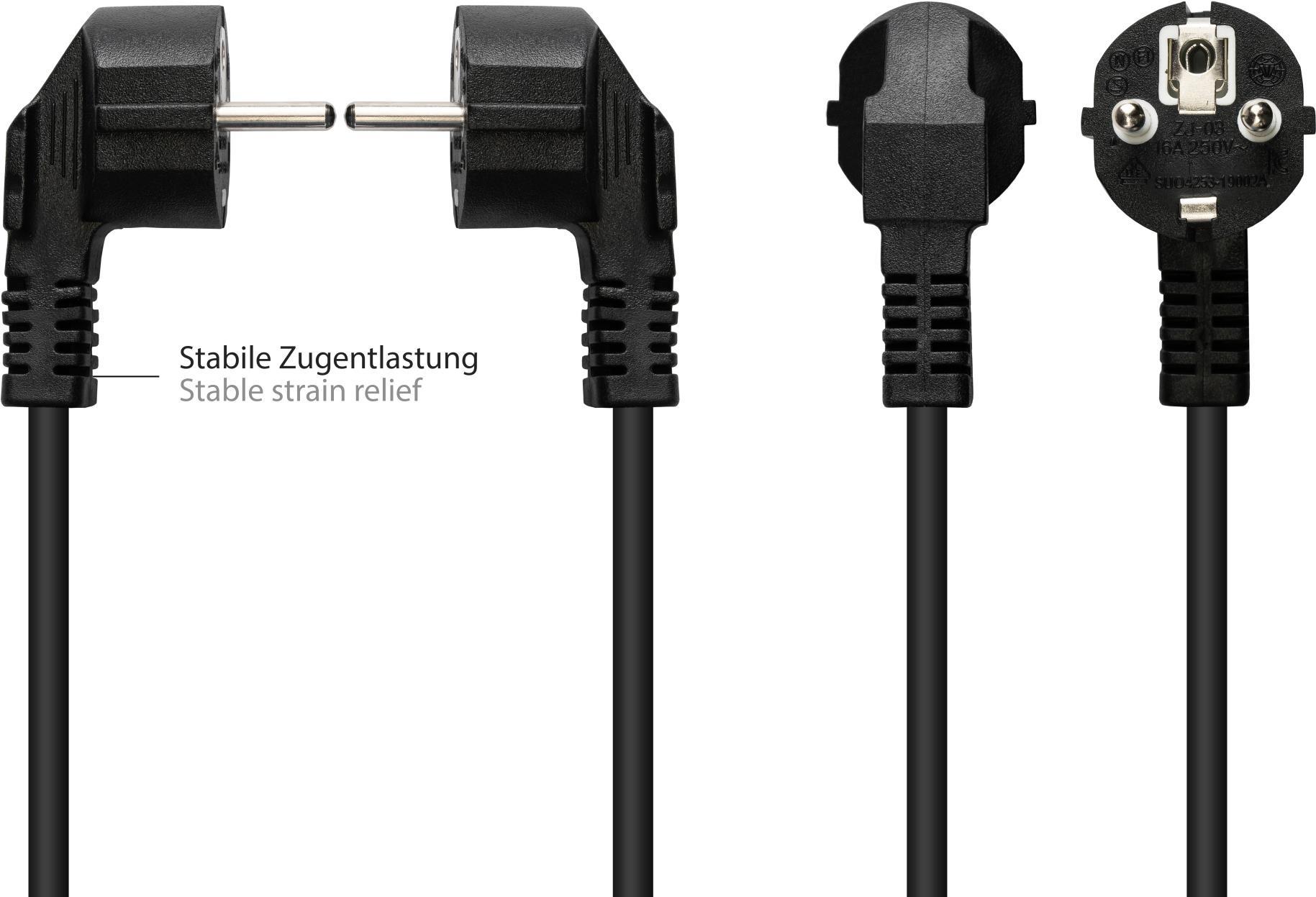 Verlängerung Schutzkontakt-Stecker Typ E+F (CEE 7/7, gewinkelt) an Buchse Typ F (CEE 7/3, gerade), schwarz, 1,50 mm², 2 m