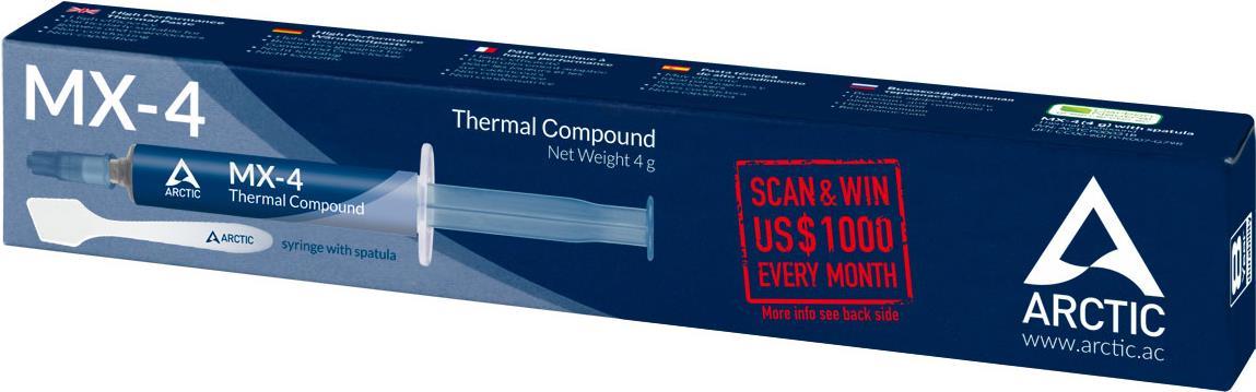 Die ARCTIC MX-4 ist eine Wärmeleitpaste mit außergewöhnlicher Wärmeleitfahigkeit und bester Konsistenz, um aus Ihrem Computer das Maximum herauszuholen. Diese Wärmeleitpaste ist die ideale Wahl für Übertakter.