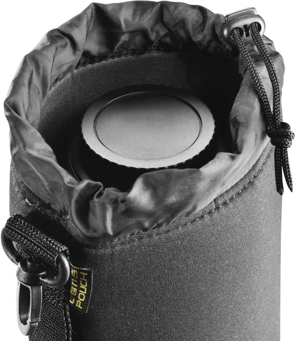 Der Objektivbeutel NEO bietet verlässlichen Schutz für Ihr Objektiv. Er ist aus hochwertigem und wasserabweisendem Neopren gefertigt. Das Material ist sehr leicht, weich und elastisch. Gleichzeitig ist es äußerst stabil und langlebig. Der Köcher lässt sich ganz einfach mit einer Kordel mit Tunnelzug verschließen.