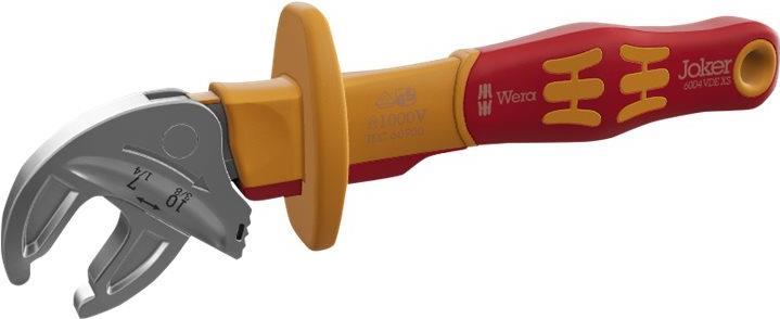 Einzeln geprüfte Werkzeuge nach IEC 60900 mit 10.000 V für sicheres Arbeiten bei der zugelassenen Spannung von 1.000 V. Der verstellbare VDE-Schlüssel greift stufenlos und automatisch alle Sechskantgrößen im angegebenen Abmessungsbereich - metrisch und zöllig. Der integrierte Hebelmechanismus klemmt die Sechskantschraube oder den Bolzen sicher zwischen den Backen ein, was die Gefahr des Abrutschens oder der Beschädigung deutlich reduziert. Die Ratschenfunktion gewährleistet ein schnelles und gleichmäßiges Verschrauben, ohne dass das Werkzeug entfernt werden muss. Durch die Verwendung der eckbreiten Rechteckprismen kann ein Rückschwenkwinkel von nur 30° erreicht werden. Die einarmige Ausführung in Verbindung mit der Ratschenfunktion und dem Eckprisma ermöglicht das Arbeiten auch bei beengten Platzverhältnissen. Der verstellbare Joker 6004 VDE hat dank der 2-Komponenten-Kunststoffisolierung einen natürlich angenehmen Griff. Die Sicherheit wird durch den Abrutschschutz am vorderen Ende des Griffs erhöht. Die Schiebefunktion ermöglicht ein berührungsloses und sicheres Öffnen der nicht isolierten Backen und bietet so zusätzlichen Schutz.