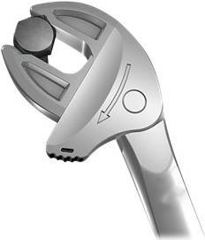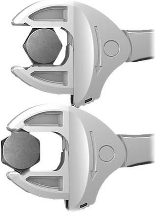 Der integrierte Hebelmechanismus klemmt die Sechskant-Schraube bzw. Mutter zwischen den Backen sicher ein, was die Gefahr des Abrutschens und der Beschädigungen deutlich verringert.
