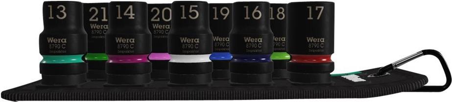 Robuster Textilgurt (Belt) im typischen Wera Design mit 9 Impaktor-Steckschlüssel-Einsätzen auf engstem Raum. Ein leichtgängiger Drehmechanismus sorgt für einen sicheren Halt und leichte Entnahme der Nüsse. Inklusive Karabinerhaken zur Befestigung an Gürtelschlaufen oder Taschen. Mit Vliesrücken und Klettklebestreifen zur einfachen Befestigung z.B. an Wand, Regal, Werkstattwagen und Wera 2go Werkzeugtransportsystem. Die Impaktor-Technologie sorgt für überdurchschnittliche Standzeiten auch bei extremen Anforderungen. Mit Take it easy Werkzeugfinder mit Farbkennzeichnung nach Größen - zum einfachen und schnellen Finden des benötigten Werkzeugs. Mit Sechskantprofil und Nut mit Bohrung. Das Sechskantprofil ermöglicht die Übertragung hoher Kräfte und belastet die Kanten der Schraubenmutter bzw. des Schraubenkopfes weniger als ein Zwölfkantprofil.