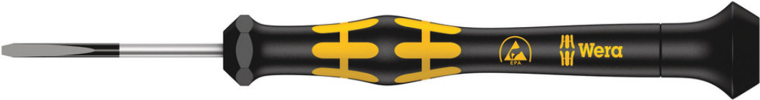 Wera ESD Micro Schraubendreher Schlitz 0,5 x 3,0mm 1578 A Kraftform Micro ESD; Für Schlitz-Schrauben, Klingenstärke 0,5 mm, Klingenbreite 3.0 mm Stiftlänge 80 mm, Grifflänge 97 mm (05030105001)