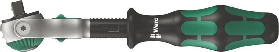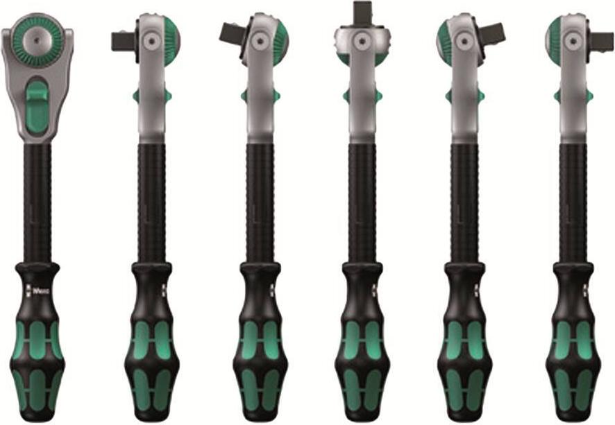 Zyklop-Ratsche mit 1/4" Antrieb. Die Feinverzahnung mit 72 Zähnen ermöglicht einen geringen Rückholwinkel von 5°. Der Knarrenkopf ist frei schwenkbar und kann mit dem beidseitigen Schiebeschalter in jeder Position arretiert werden. Unproblematisches Arbeiten mit viel Handfreiheit auch in sehr engen oder schwer zugänglichen Einbausituationen. Die vordefinierten Positionen 0°, 15° und 90° nach links und rechts garantieren sicheres Arbeiten ohne Abrutschen des Ratschenkopfes. In der 0°-Position kann die Ratsche mit Adapter und Bit wie ein herkömmlicher Schraubendreher verwendet werden. Die Schwungradkonstruktion trägt zur Beschleunigung des Schraubvorgangs bei. Das rotationssymmetrische Design des Kraftform-Griffs und die schnelldrehende Hülse unterstützen das schnelle Drehen. Dank der perfekt an die Hand angepassten Form des Kraftform-Griffs werden Handverletzungen wie Blasen und Schwielen vermieden. Die für den Griff verwendeten harten Materialien garantieren einen schnellen Handwechsel, ohne dass die Gefahr besteht, dass die Haut am Griff "kleben" bleibt. Die weicheren, "rutschfesten" Zonen bieten eine verlustfreie Übertragung hoher Kräfte. Für 1/4"-Vierkant-Steckschlüsseleinsätze sowie 1/4"-Verbinder mit Vierkantantrieb, mit Kugelsicherung.