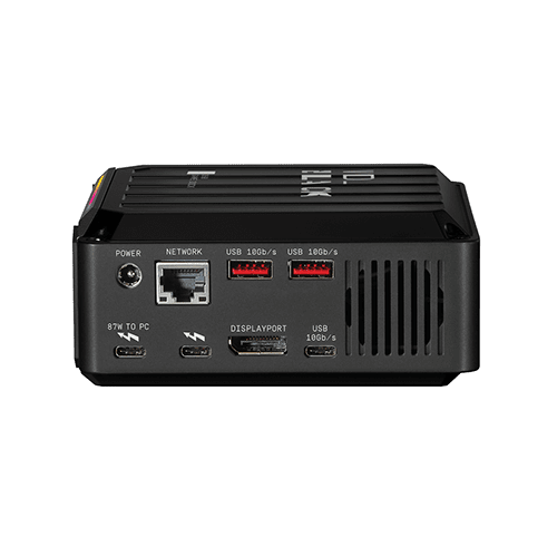 Verwandeln Sie Ihren Laptop ganz einfach in eine integrierte Gaming-Station. Kabelsalat gehört der Vergangenheit an – mit einem einzigen Multiport-Thunderbolt-3-Kabel können Sie alle Ihre Peripheriegeräte und ein zusätzliches Display mit bis zu 5K-Auflösung und 60 Hz anschließen. Die hohe Leistung sorgt für kürzere Ladezeiten und dank großer Kapazität können Sie mehr Spiele speichern.