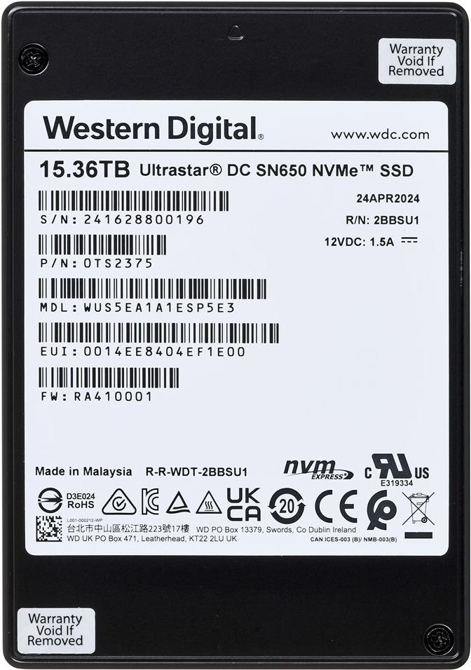 | Produktbeschreibung | WD Ultrastar DC SN650 WUS5EA1A1ESP5E3 - SSD - 15.36 TB - U.3 PCIe 4.0 (NVMe) |