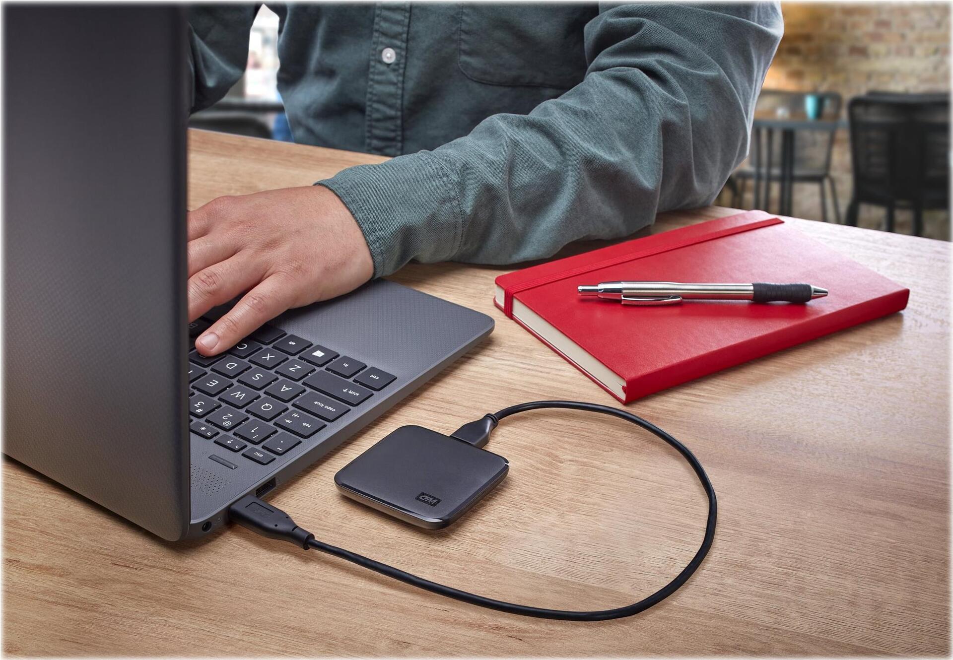 Nutzen Sie die kostengünstige SSD-Leistung im Taschenformat für den mobilen Einsatz. Die kompakte mobile SSD bietet Lesegeschwindigkeiten von bis zu 400 MB/s, damit Sie Ihre Dateien jederzeit mit hoher Geschwindigkeit übertragen und die Produktivität steigern können. Steigern Sie die Produktivität mit einer WD Elements SE SSD vom bewährten Hersteller.