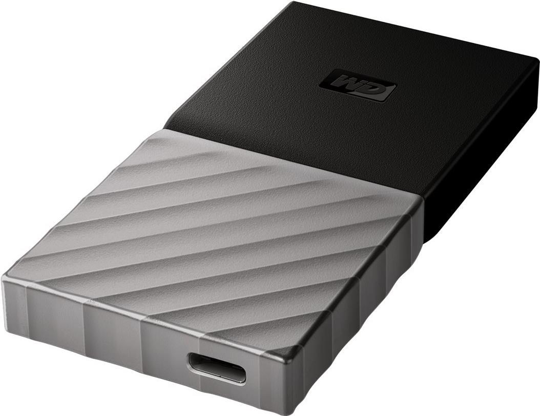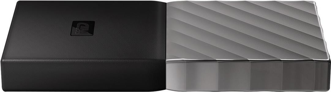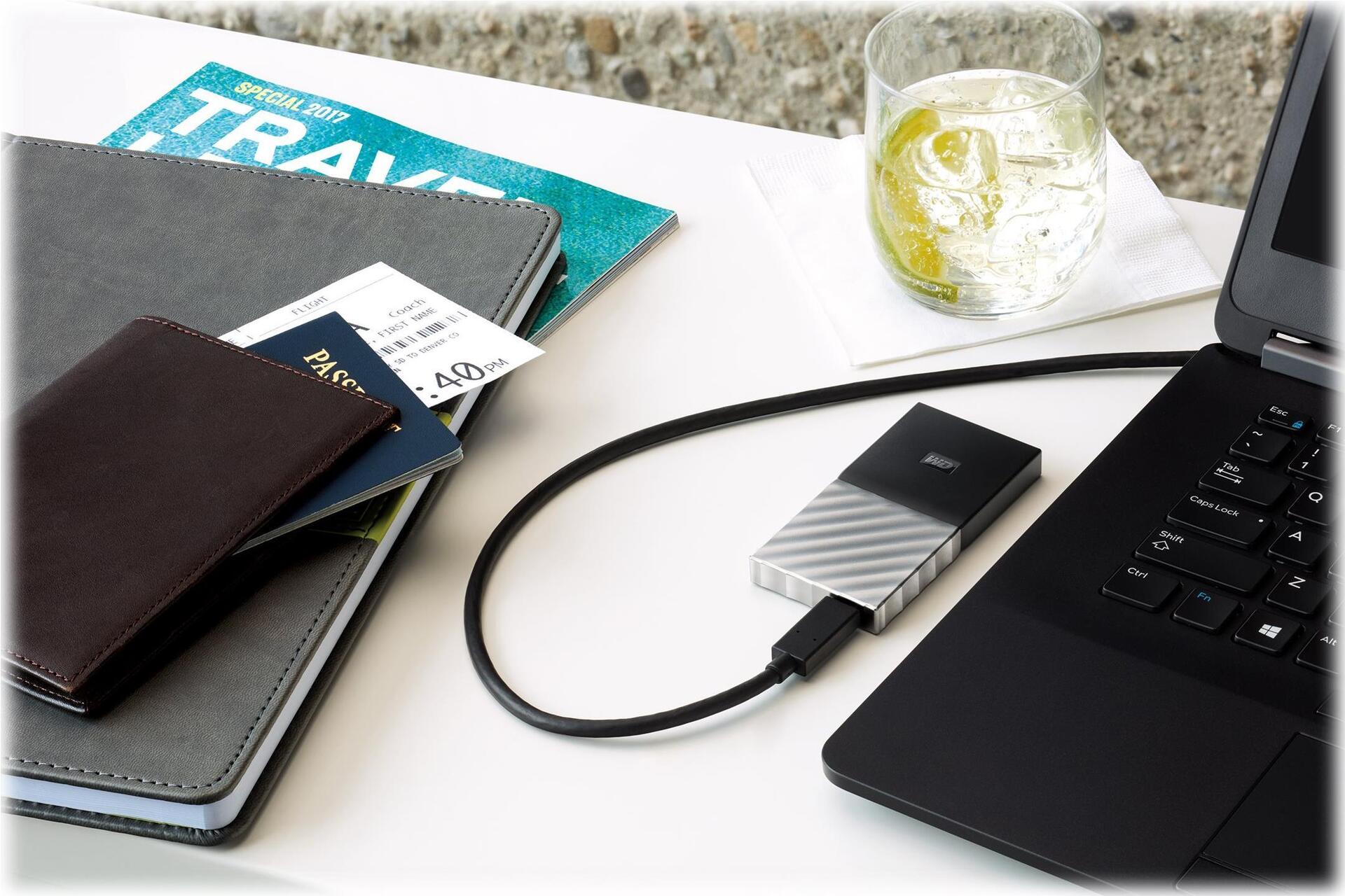 WD My Passport SSD WDBKVX0020PSL - SSD - verschlüsselt - 2 TB - extern (tragbar) - USB 3.1 Gen 2 (USB-C Steckverbinder) - 256-Bit-AES - schwarze Oberseite mit gunmetal (mittel metallisch grau) Boden