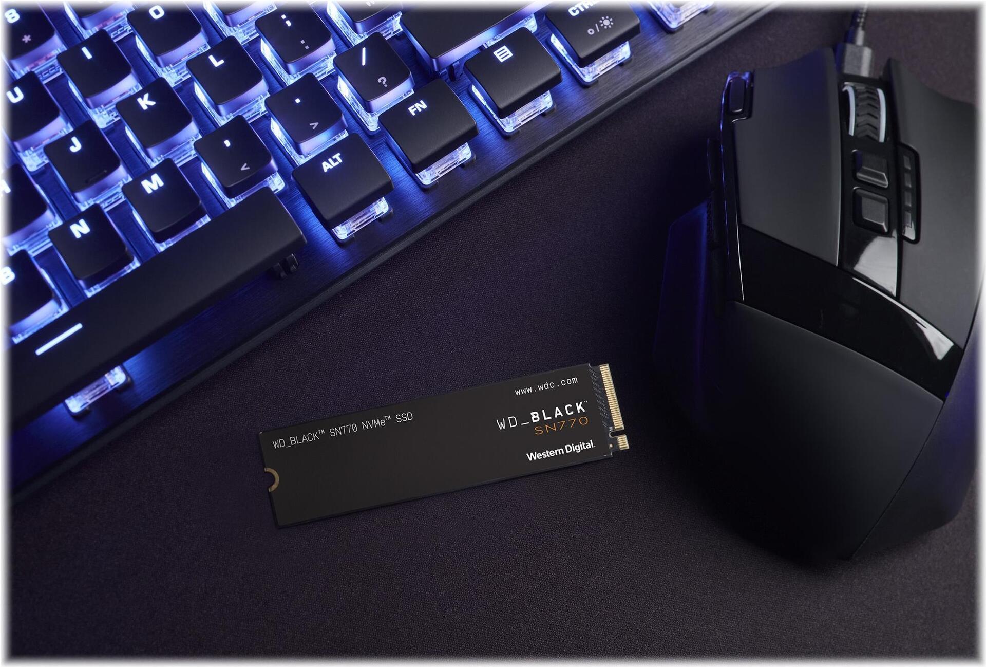Die WD BLACK SN770 NVMe SSD sorgt für noch schnelleres Gaming. Erleben Sie jetzt eine komplett auf Gaming ausgelegte SSD mit bis zu 40% höherer Geschwindigkeit und 20% höherer Energieeffizienz bei maximaler Geschwindigkeit als bei der Vorgängergeneration. Tauchen Sie in rasante Action ein, ohne durch lästige Ladezeiten ausgebremst zu werden. Die PCIe Gen 4-Schnittstelle ist mit führenden CPU- und Motherboard-Plattformen kompatibel sowie abwärtskompatibel mit PCIe Gen 3 und sorgt für rasante Geschwindigkeiten von bis zu 5.150 MB/s. Das bedeutet weniger Wartezeit und mehr Spielspaß und Streamen Ihrer Lieblingsspiele. Mit Kapazitäten von bis zu 2 TB können Sie mehr Spiele speichern und haben genügend freien Speicherplatz für zukünftige Updates und herunterladbare Inhalte. Diese geballte Leistung steckt in einer zuverlässigen SSD, die speziell für Gamer wie Sie designt und entwickelt wurde.