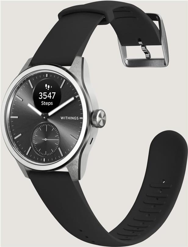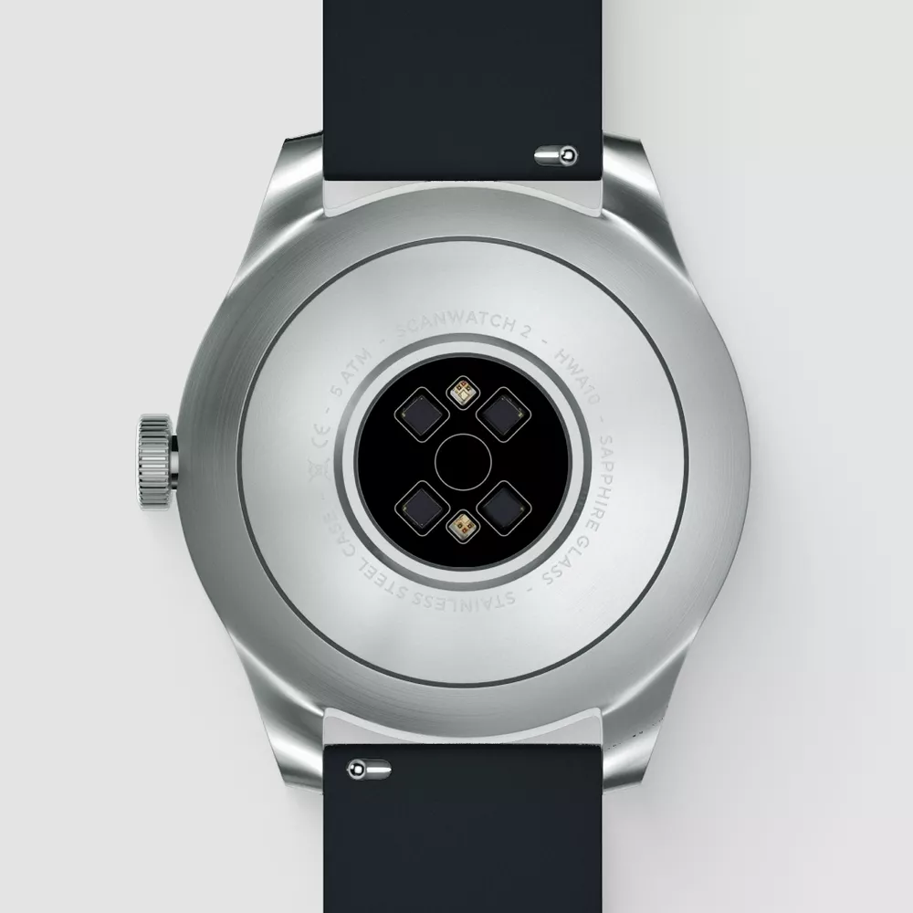Entdecken Sie die Withings ScanWatch 2, eine Hybrid-Smartwatch, die klassisches Design mit modernen Gesundheits- und Aktivitätsmessungstechnologien verbindet. Dieses Wearable ist nicht nur ein Zeitmesser, sondern auch ein umfassender Wellness-Begleiter. Mit einem austauschbaren Fluorelastomer-Armband und einem robusten, durch Saphirglas geschützten Edelstahlgehäuse bietet sie sowohl Stil als auch Widerstandsfähigkeit. Die ScanWatch 2 ist mit Bluetooth 5.1 LE für effiziente Konnektivität ausgestattet und verfügt über einen wiederaufladbaren Akku, der Sie mit nur 2 Stunden Ladezeit durch den Tag bringt.