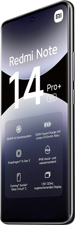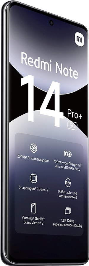 Erleben Sie die Leistungsfähigkeit des Xiaomi Redmi Note 14 Pro+, das entwickelt wurde, um Ihr mobiles Erlebnis mit fortschrittlicher Technologie und bemerkenswerten Funktionen zu verbessern. Mit einem robusten 5110-mAh-Akku und der Xiaomi-HyperCharge-Technologie können Sie das schnelle Aufladen genießen, um den ganzen Tag über in Verbindung zu bleiben. Das beeindruckende 6,67-Zoll-OLED-Display unterstützt eine Auflösung von 2712 x 1220 Pixeln, kombiniert mit einer Bildwiederholfrequenz von 120 Hz und Dolby Vision-Unterstützung, und sorgt so für lebendige visuelle Klarheit und reibungslose Leistung beim Spielen und Streamen.