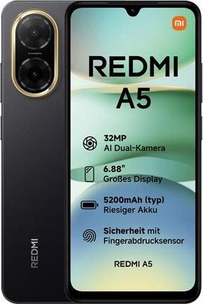 Dieses Smartphone verfügt über Dual-SIM-Fähigkeit und bietet Nutzern damit bequeme Optionen für die Verwaltung ihrer privaten und geschäftlichen Telefonnummern. Das Android-Betriebssystem ermöglicht nahtloses Multitasking, während der integrierte Fingerabdrucksensor und die KI-Gesichtserkennungstechnologie die Sicherheit und den Zugriff vereinfachen. Mit einer leistungsstarken 32-Megapixel-Rückkamera und Videoaufnahmen mit bis zu 1080p bei 30 fps sowie einer Frontkamera mit verschiedenen Aufnahmemodi können Nutzer atemberaubende Bilder und Videos aufnehmen, was das Xiaomi Redmi A5 zu einer guten Wahl für alle macht, die ein zuverlässiges Smartphone suchen.