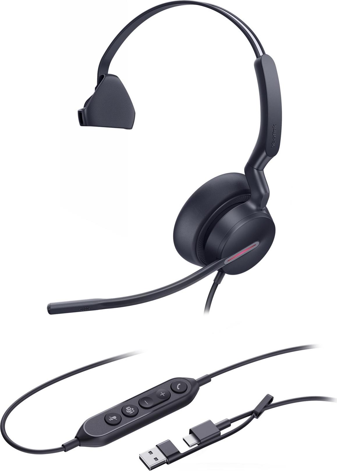Yealink UH46 Mono 1308242 Headset – USB-C/USB-A – monaural – Noise-Cancelling – 35mm Lautsprecher – Wideband-Audio – 3-Mikrofon-Technologie – Schwarz