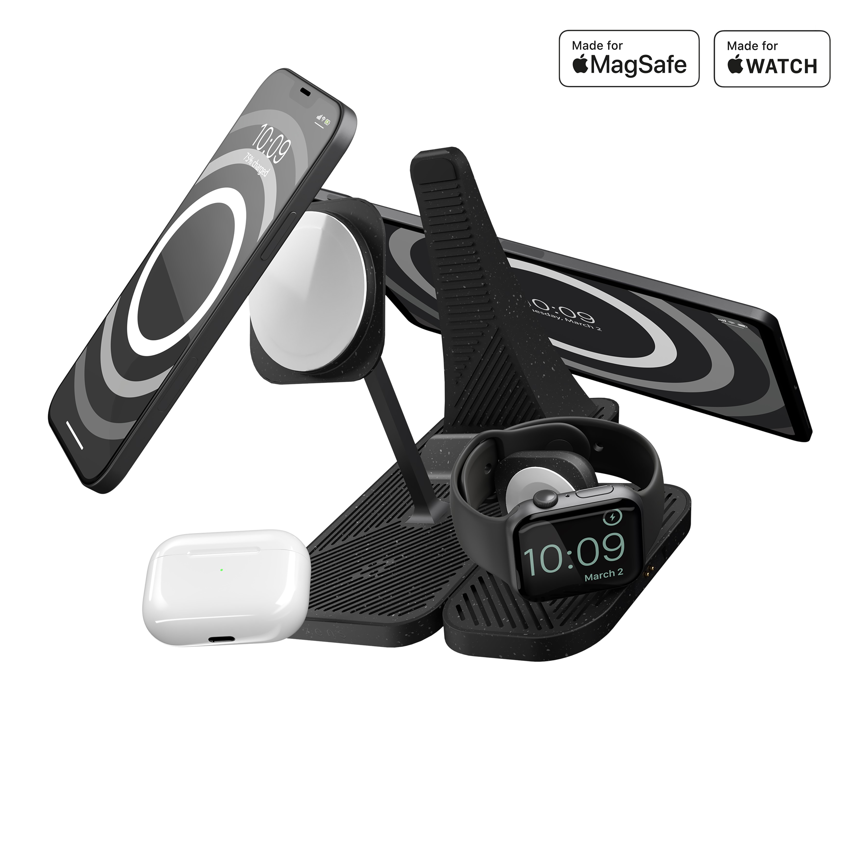 Der aus recyceltem Kunststoff gefertigte Ladeständer ist eine umweltfreundliche Wahl, die keine Kompromisse bei der Leistung eingeht. Im Lieferumfang ist ein 40 cm langes USB-C-auf-USB-C-Kabel enthalten, das MagSafe-kompatibel ist und so eine sichere Verbindung und erhöhten Komfort bietet. Egal ob im Hoch- oder Querformat, die Ladestation hält Geräte zugänglich und sorgt für einen übersichtlichen Platz.
