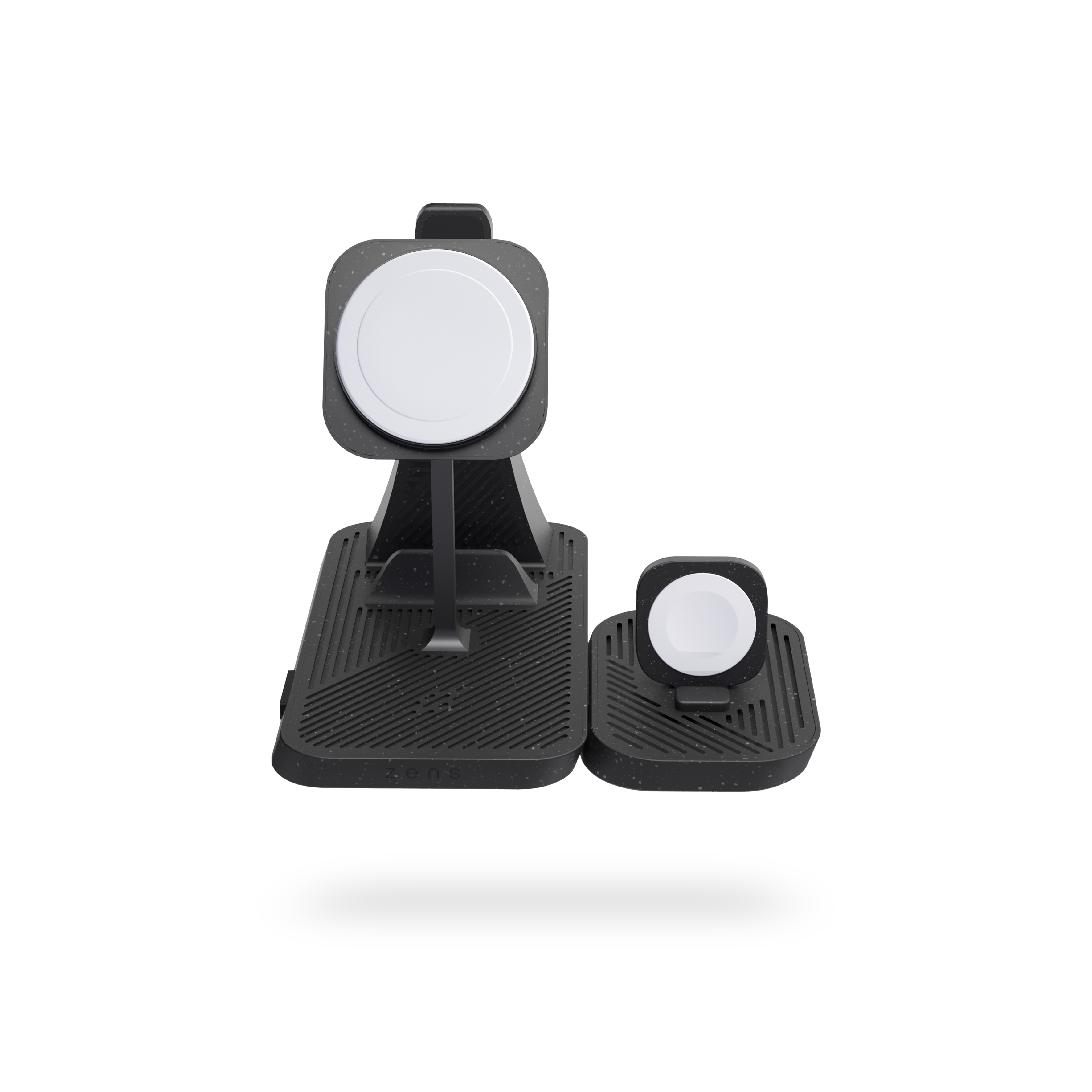 Die kabellose 4-in-1-Ladestation von ZENS ist eine vielseitige Lösung zum gleichzeitigen Aufladen mehrerer Geräte. Mit einer Ausgangsleistung von 30 W kann sie ein Tablet, ein Mobiltelefon, eine Smartwatch und kabellose Kopfhörer gleichzeitig aufladen. Das modulare Design ermöglicht einfache Anpassungen mit bis zu drei Verlängerungen und gewährleistet so die Kompatibilität mit verschiedenen Geräten und Ladeanforderungen.