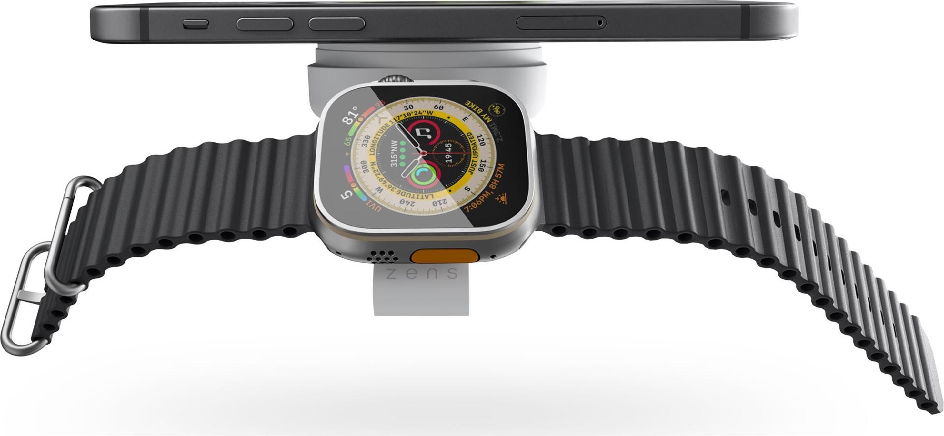 Das ZENS 2-in-1 MagSafe + Watch Wireless Charging Pad bietet eine vielseitige Lösung zum Aufladen Ihrer Geräte. Es eignet sich sowohl für Mobiltelefone als auch für Smartwatches und verfügt über eine Ausgangsleistung von 20 W für effizientes Aufladen. Der integrierte Ständer ermöglicht einen einfachen Zugriff auf die Geräte während des Ladevorgangs. Das geflochtene USB-C-auf-USB-C-Kabel sorgt für Langlebigkeit und ermöglicht das gleichzeitige Laden von bis zu 2 Geräten ohne Leistungseinbußen. Dieses Ladepad ist mit MagSafe kompatibel und bietet ein sicheres und effizientes Ladeerlebnis.