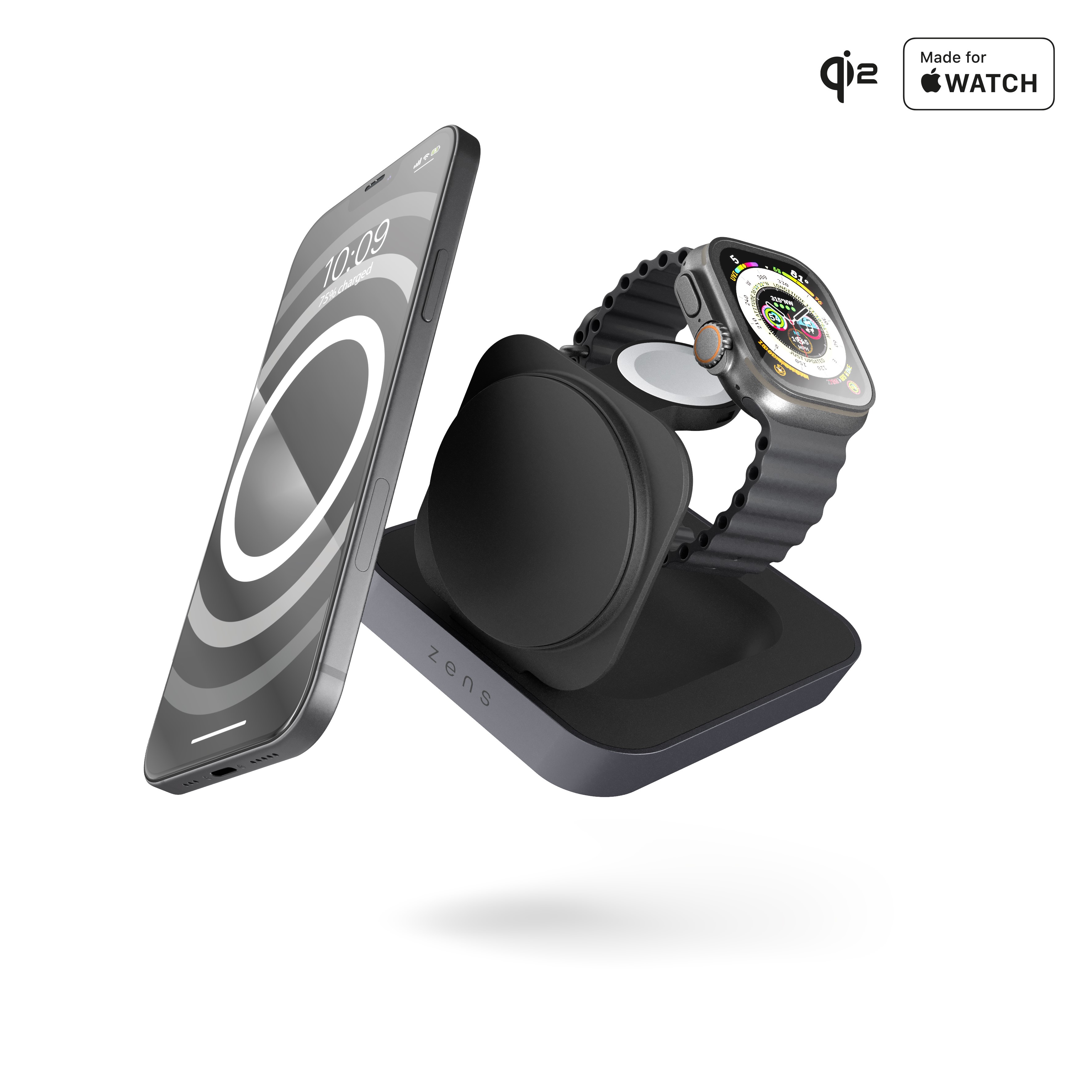 ZENS Nightstand Charger Pro 2 Kopfhörer - Smartphone - Smartwatch Schwarz AC Kabelloses Aufladen Schnellladung Drinnen (ZEDC28B/00)