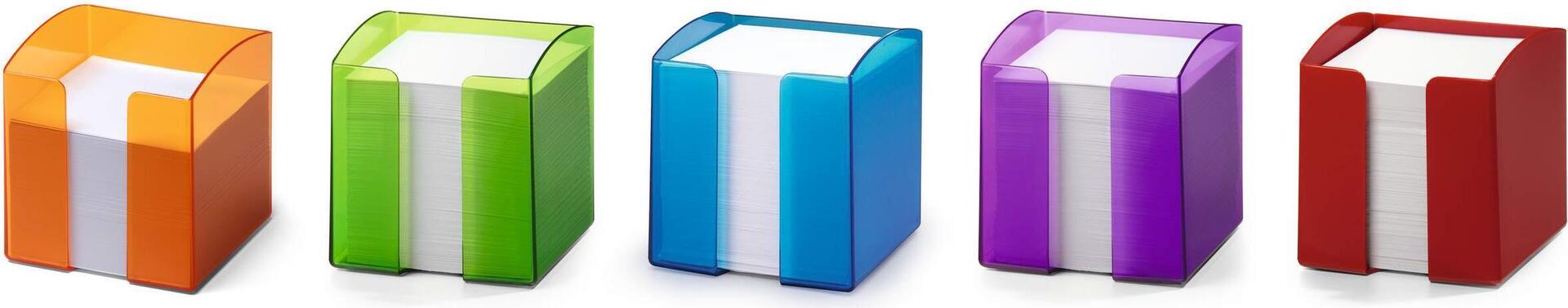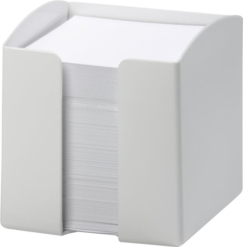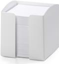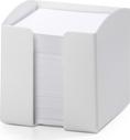 Praktische Zettelbox. Komplett mit 800 weißen Papierscheinen (90 x 90 mm). Einfache Entnahme der einzelnen Blätter.