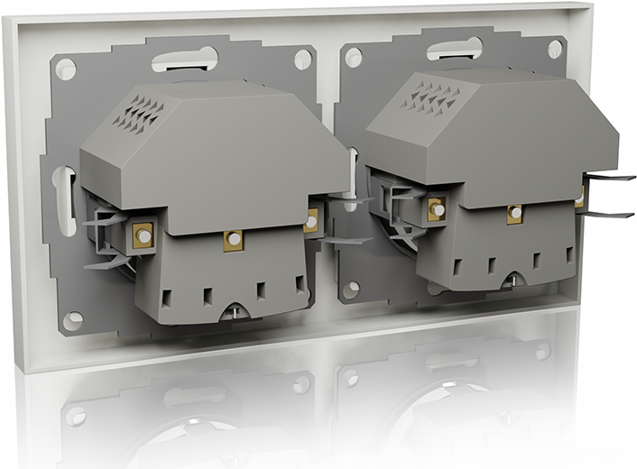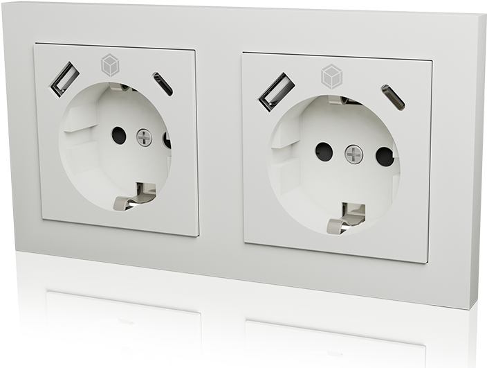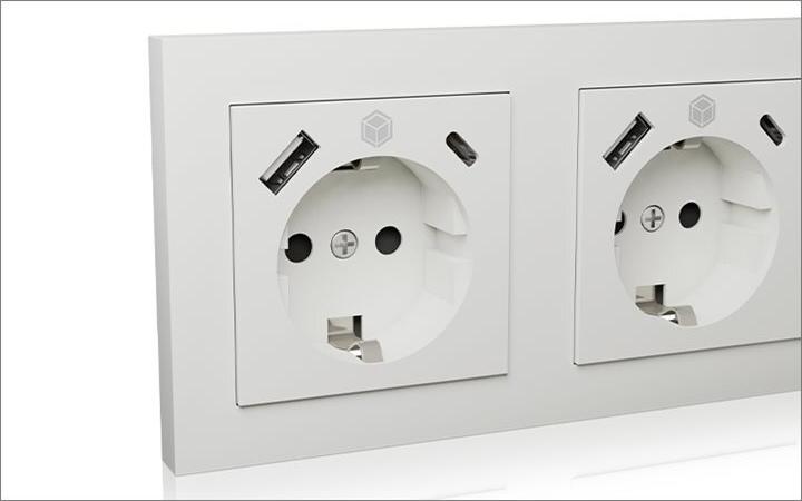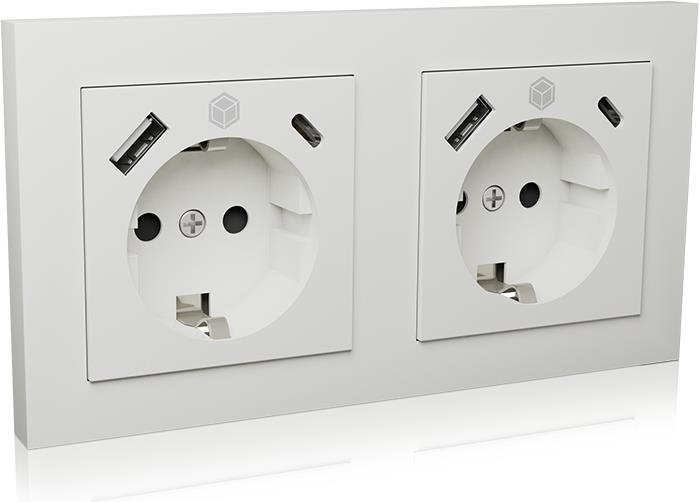 Zwei Unterputz Steckdosen inklusive Einfach- und Doppeleinbaurahmen und USB Charger (A & C) (IB-MPS4200W-PD)