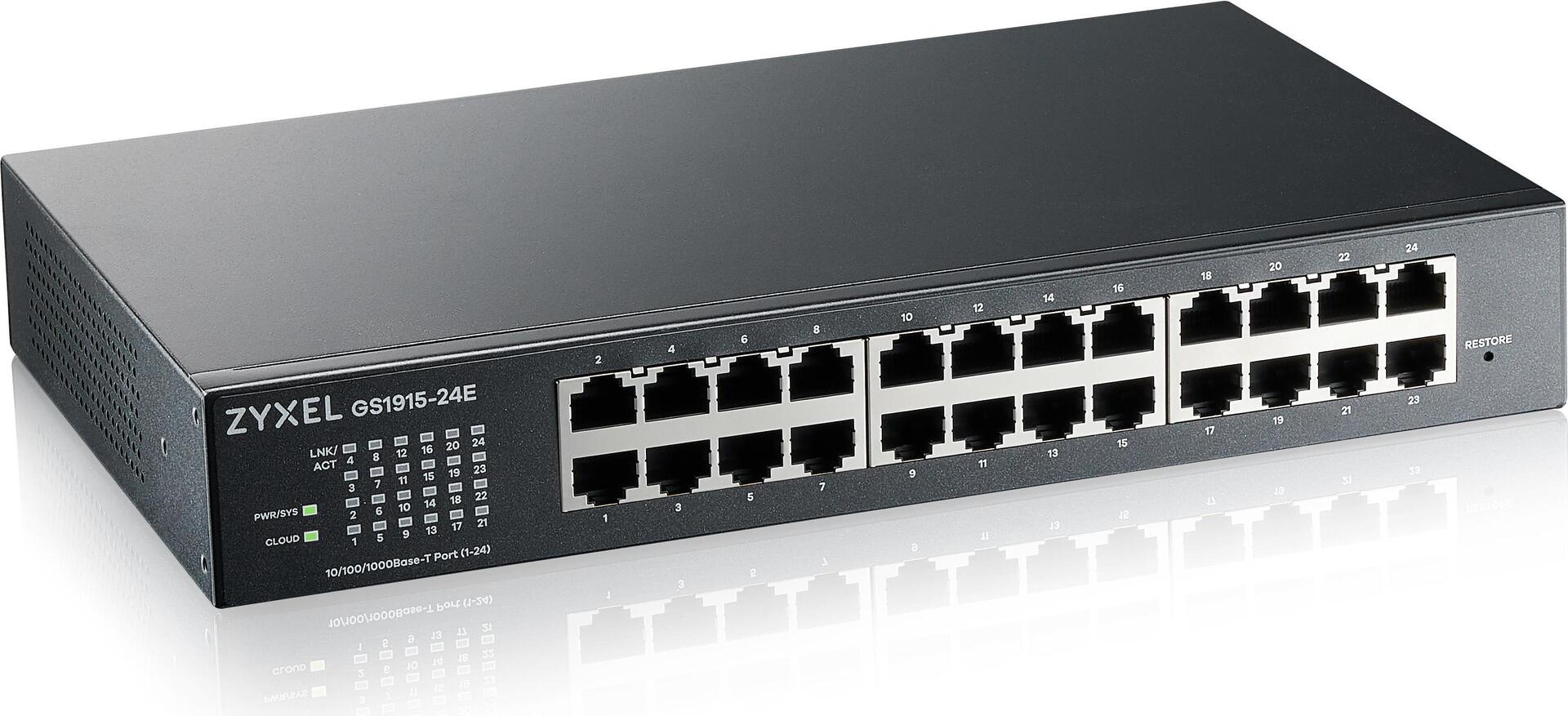 | Produktbeschreibung | Zyxel GS1915 Series GS1915-24E - Switch - kompatibel mit NebulaFLEX - 24 Anschlüsse - Smart |